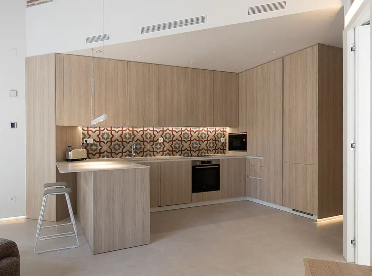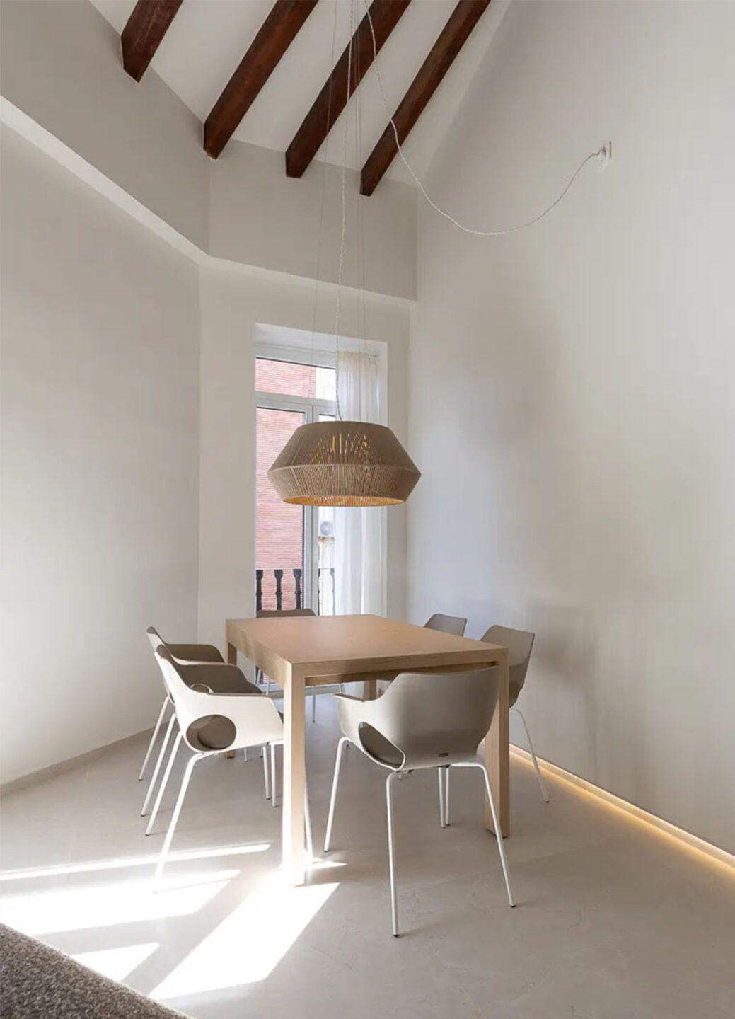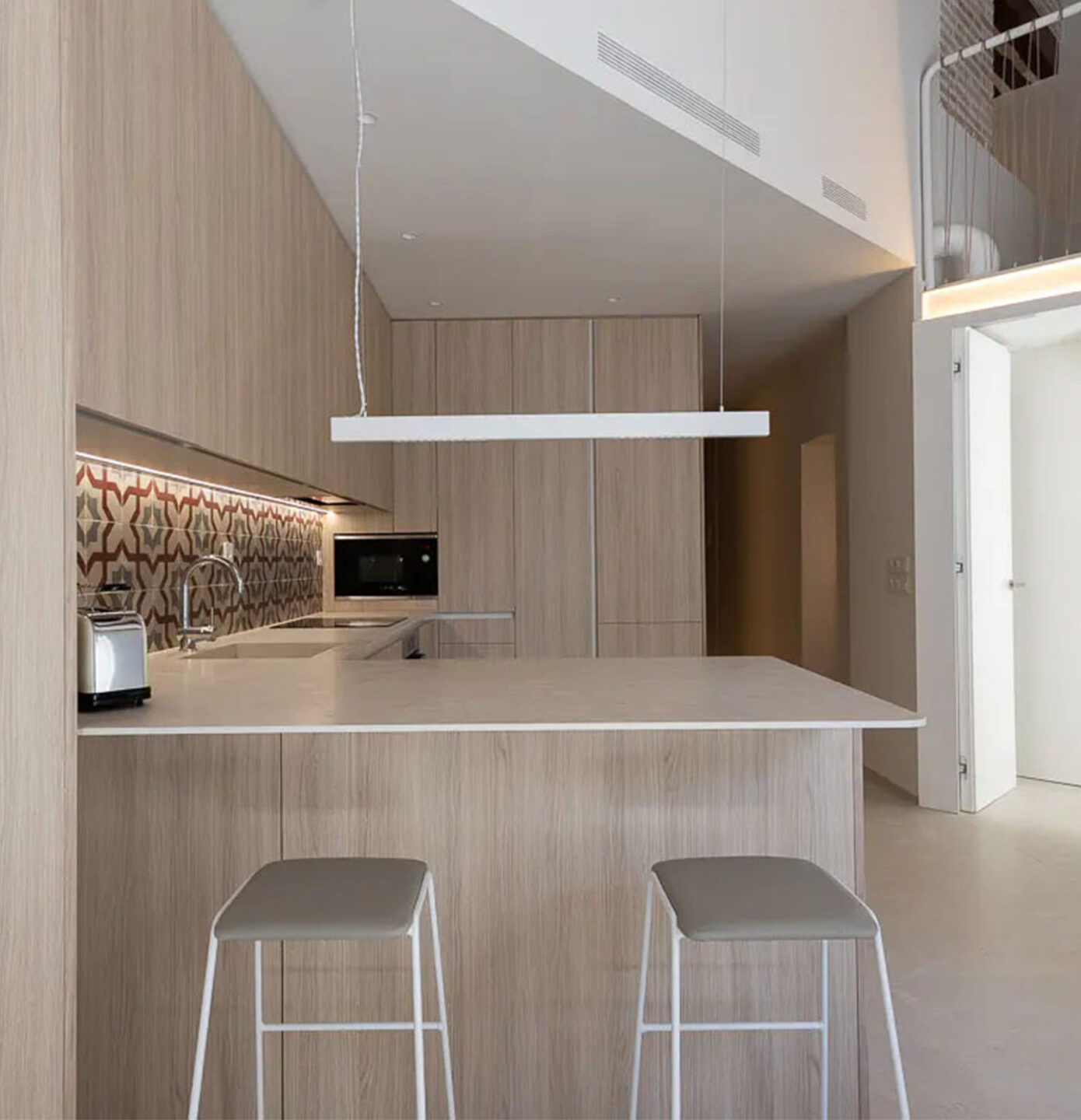 La reforma se ha realizado con acabados de alta calidad, donde predominan los tonos blancos y la madera natural, creando un ambiente cálido, elegante y muy luminoso. Cada detalle ha sido cuidadosamente elegido, materiales nobles y una distribución pensada para disfrutar del espacio.