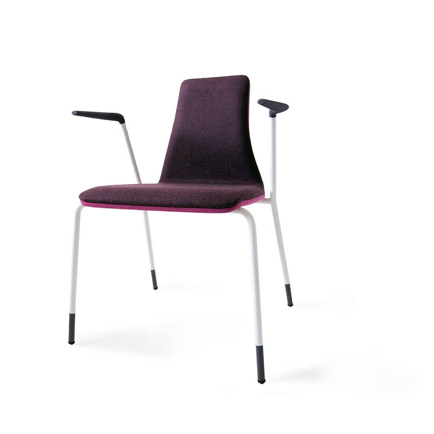 La sinuosa línea de su carcasa transmite presencia y personalidad propia. Uit ofrece una buena ergonomía y la posibilidad de combinar diferentes tejidos. Tanto la versión de silla con brazos y la de sin brazos, ambas apilables, están fabricada en estructura de tubo de acero lacada en epoxi o cromo.